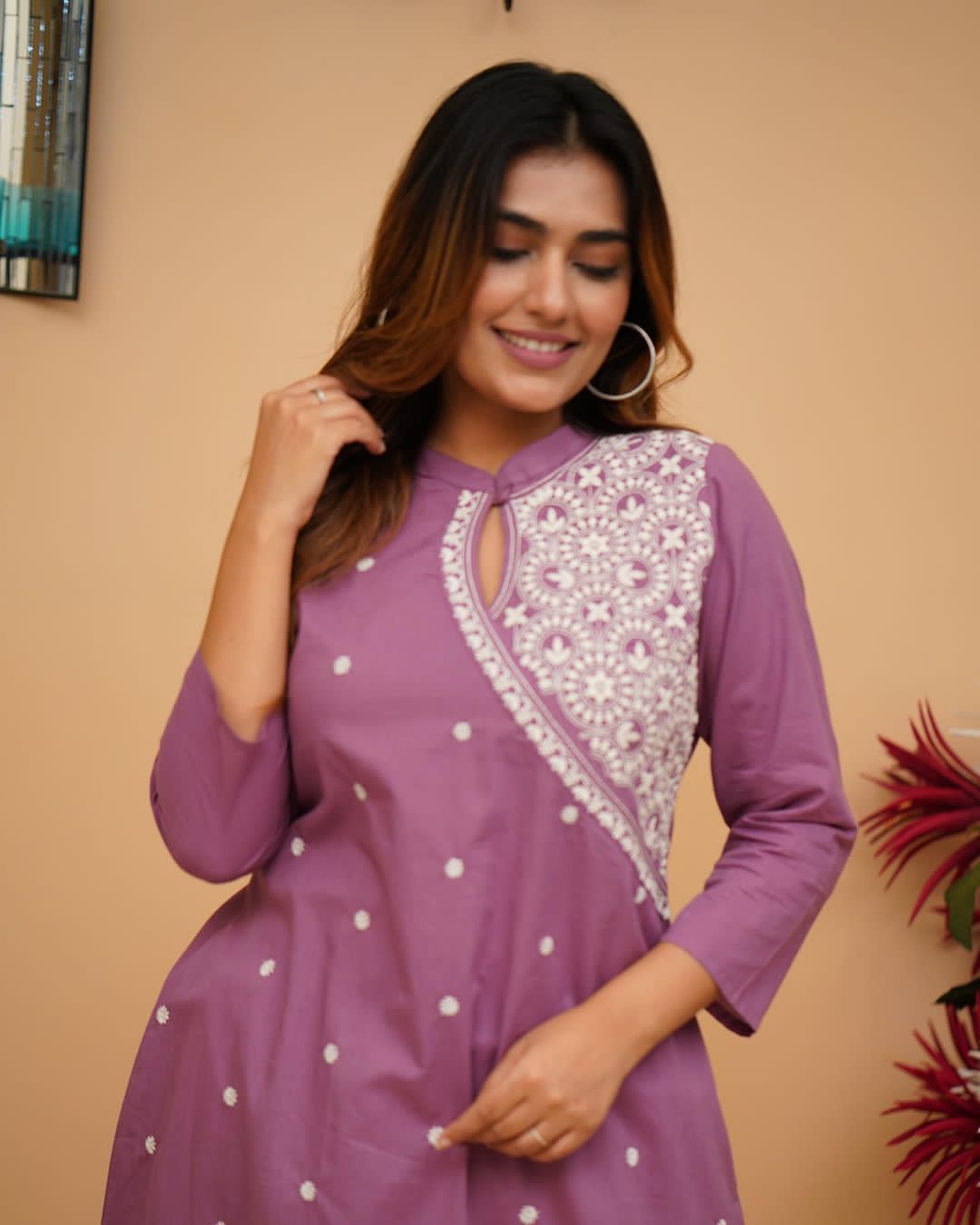 Beautiful Cotton 60.60 Kurti and Pant with  embroidery work