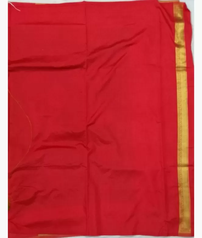 Heavy pallu of fine quality of jari and sequence work with contrast colour border and latkan on saree. matching work of saree border is on blouse patti for neck and sleeves.