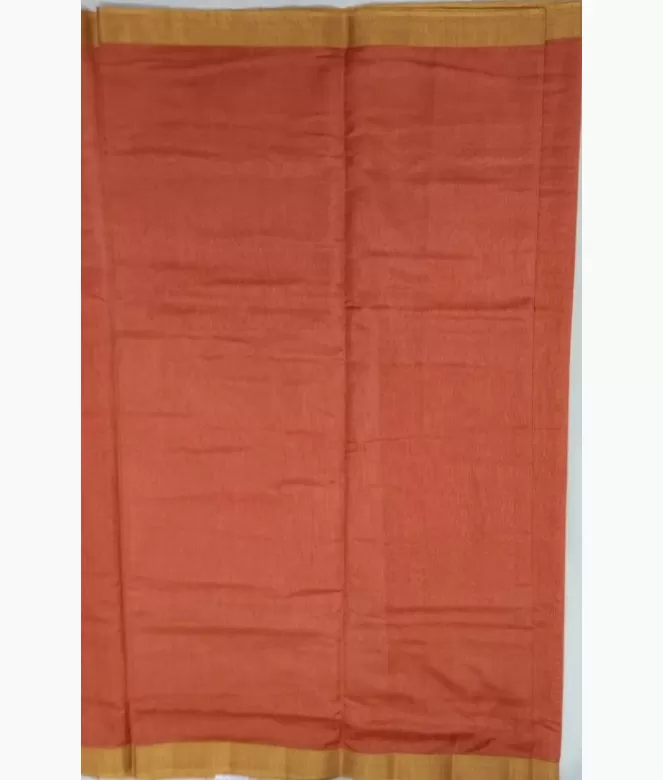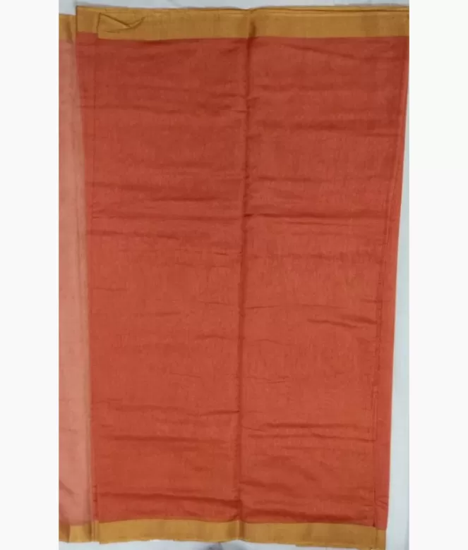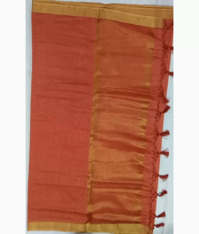 All over plain saree in rich linen cotton fabric. Pallu is of golden colour zari strip with full latkan.