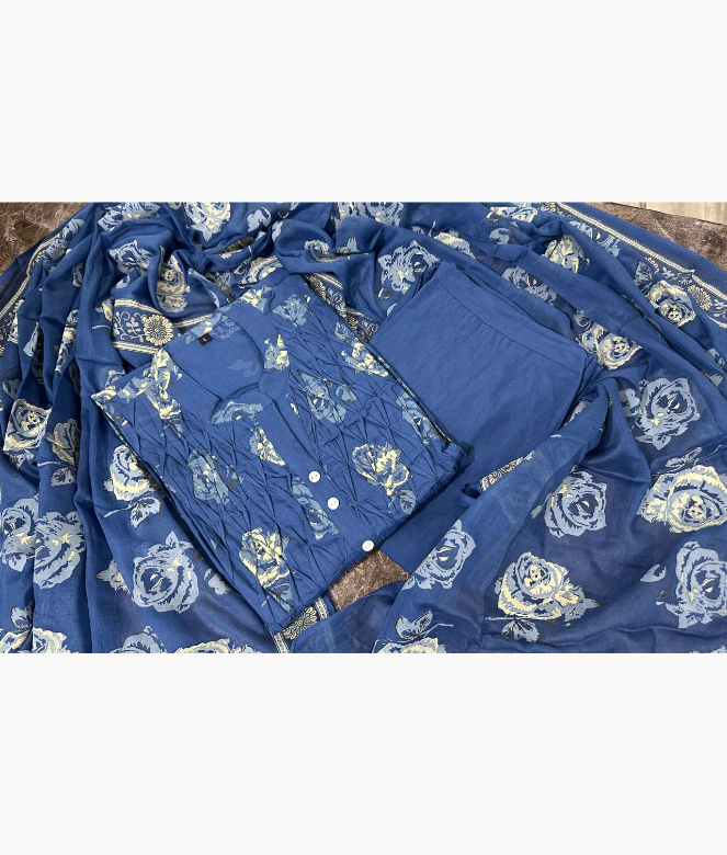 Beautiful Stitched Cotton Blue Suit Set
