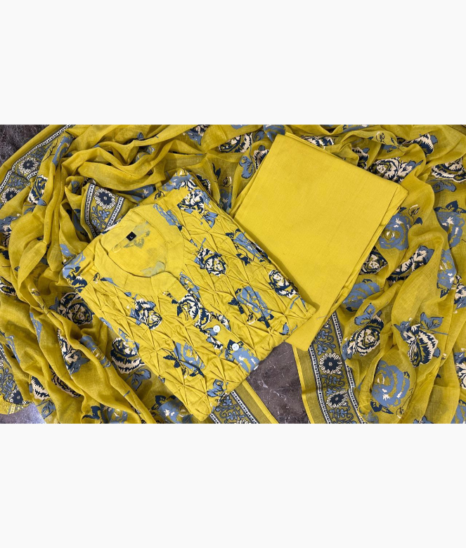 This A-line pant set is ideal for summer, featuring a vibrant floral print that exudes freshness and style. The confident pocket on one side adds both functionality and a modern twist to the design. Paired with a matching dupatta, this ensemble not only enhances your look but also provides versatility for any occasion. Whether you're heading to a casual outing or a festive gathering, this set combines comfort and elegance effortlessly, making it a perfect addition to your warm-weather wardrobe. Enjoy a stylish summer with this delightful outfit!