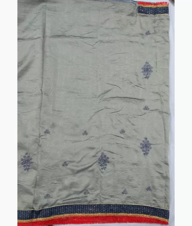 All over grey colour thread booty on saree. Small and big size design flower booty in grey colour thread work all over on saree.