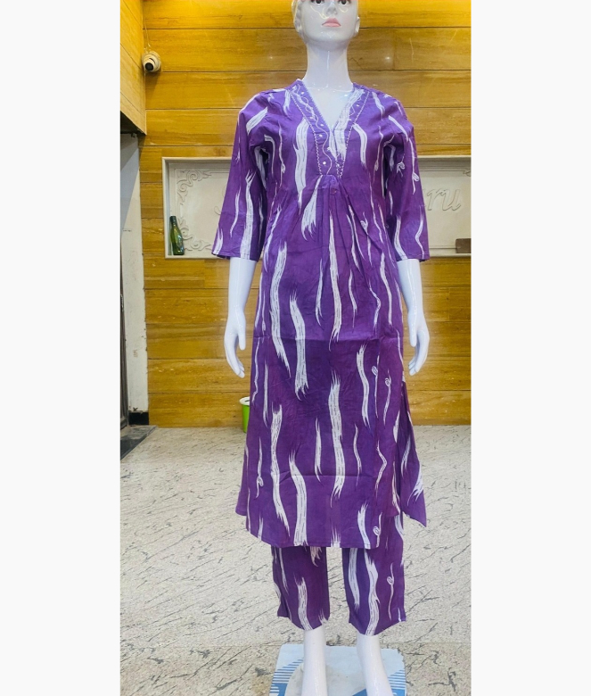Discover effortless style with the Magnificent Designer Cotton purple Co-Ord Set. Crafted from soft, breathable cotton, this chic ensemble features a beautifully designed kurti that pairs perfectly with matching bottoms. The vibrant purple color adds a refreshing touch, making it ideal for casual outings or festival gatherings. Its comfortable fit and trendy silhouette ensure you look stylish while feeling at ease. Elevate your wardrobe with this versatile co-ord set that effortlessly transitions from day to night, perfect for any occasion!