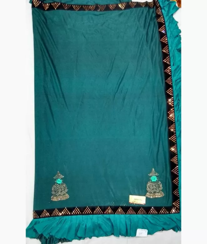Bottle Green Saree Party Wear Bottle Green Crepe Swimmer Saree Sapar2112