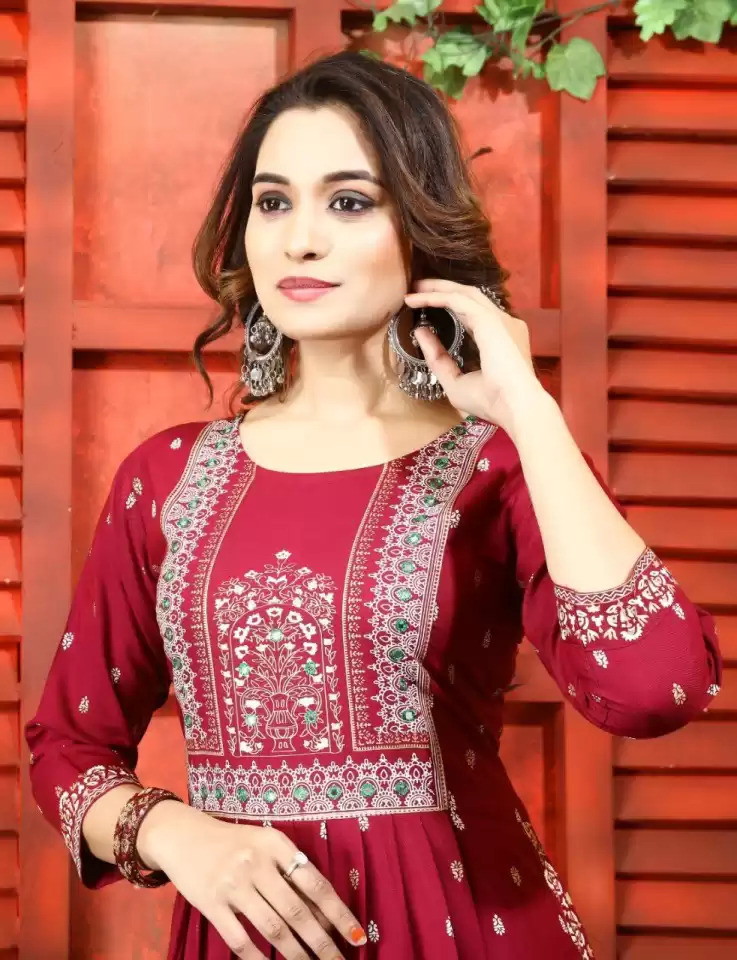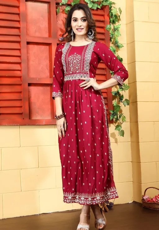 Overall, this two-piece pant-kameez ensemble with an Indian designer embroidered Rayon A-line kurta exudes sophistication.