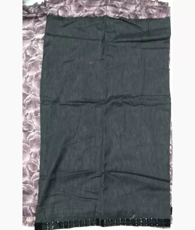 All over digital print flower design with excellent on saree. Border is of black colour velvet patti with mirror work and frill on saree.