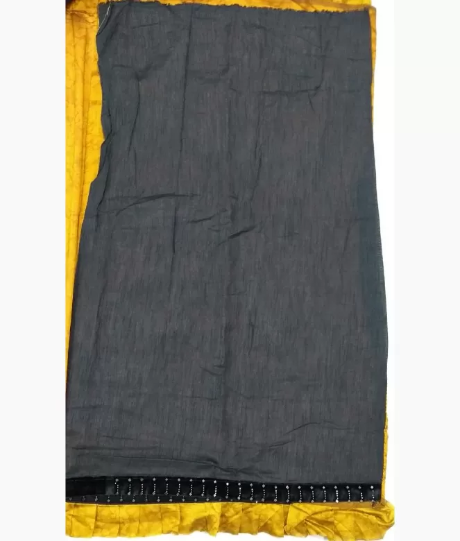 Blouse is of row silk fabric with contrast colour black matching same border of saree for sleeves.