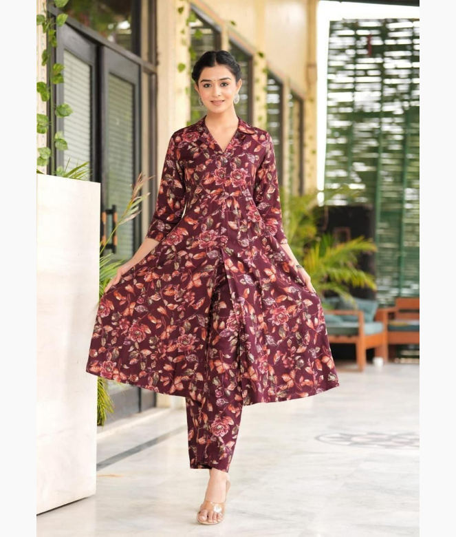 Discover timeless elegance with the Glorious Maroon Cotton Stitched Long Co-Ord Set. This beautifully crafted set features a rich maroon color and soft cotton fabric, offering both comfort and style. Ideal for any occasion, it combines the grace of a kurti with the versatility of a co-ord set. Perfect for making a statement while enjoying effortless wear.