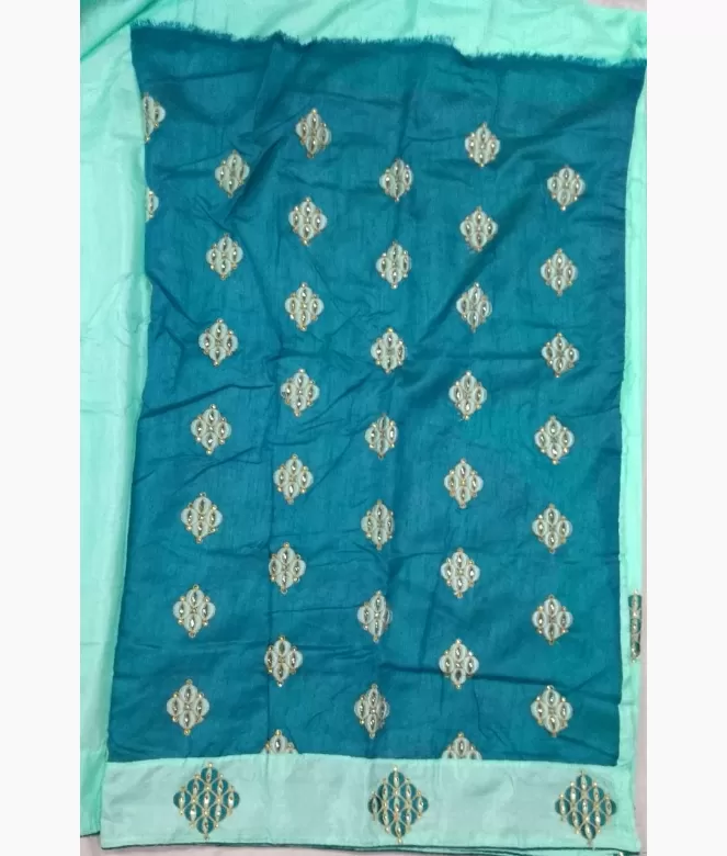 Blouse is of same rhombus design with zari and sequence work on all over in contrast colour with same matching border of saree in same colour for all types of beautifully look.