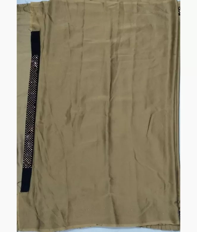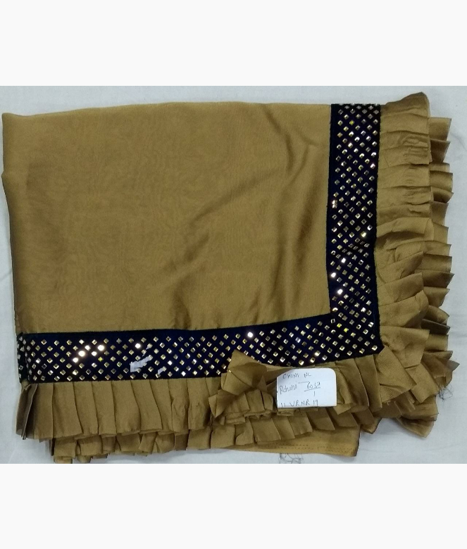 Border is of velvet fabric contrast colour on saree with nice minor work on border patti. Matching same border of saree is on blouse border patti for neck and sleeve.