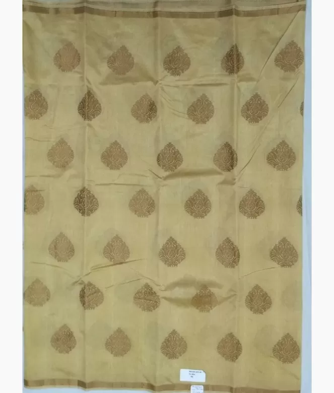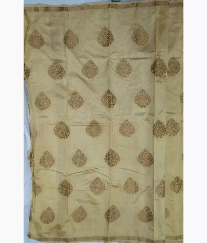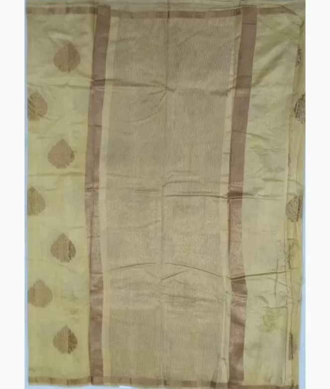 Border is of small patti in antique golden zari on saree. Matching same colour and work of saree is on all over blouse for back, neck and sleeves.