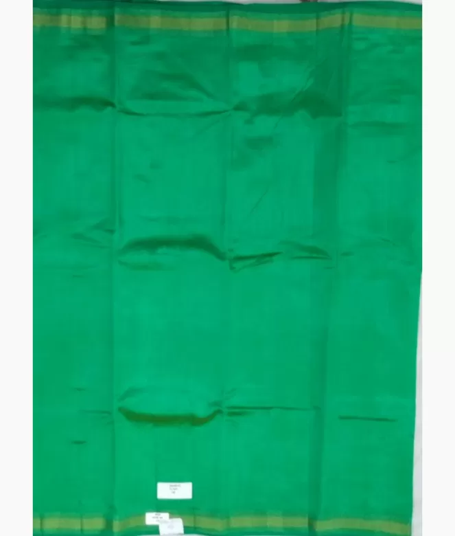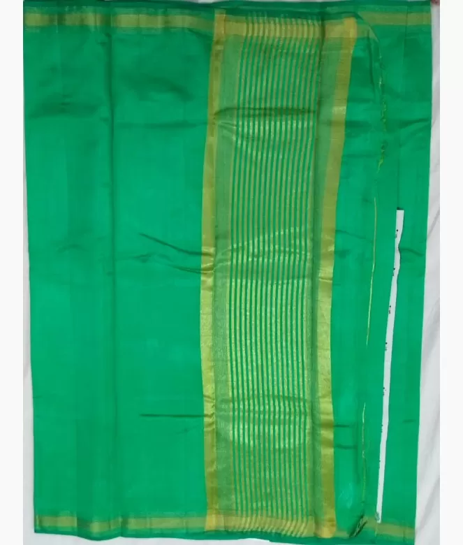 Border is of golden colour piping zari work with Zari strips design on all over saree. Matching same border of saree is on blouse border patti for neck and sleeves.