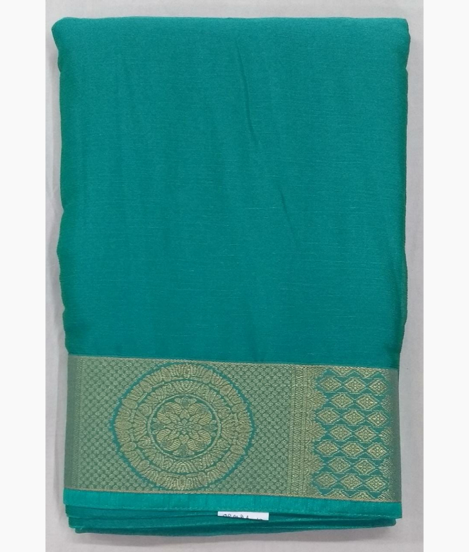 All over plain chiffon designer look saree. Pallu is of brocket border patti with golden colour zari work.