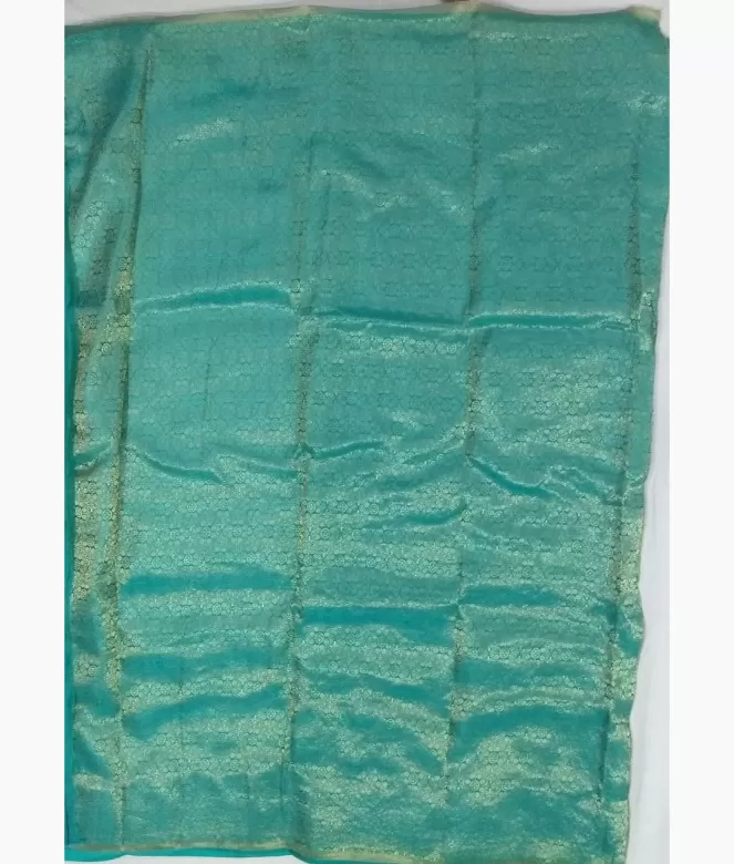 Border is of broad golden colour zari work shows fine quality of work. Blouse is of matching same pallu border of saree of brocket for back, neck and sleeves.