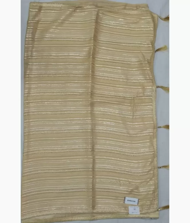 All over horizontal strip design on saree with Self colour satin patti design on all over saree.