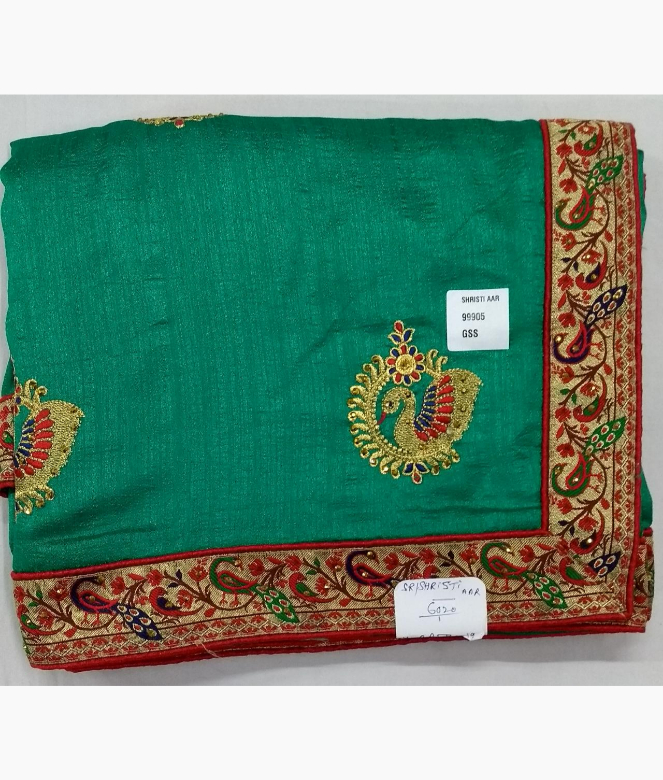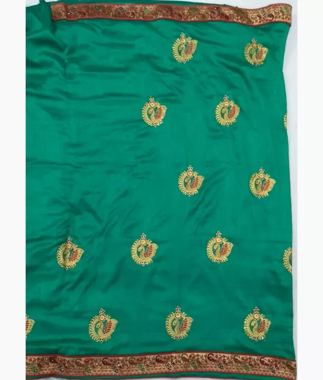 Green Saree Party Wear Green Dupion Silk Saree Sapar2113