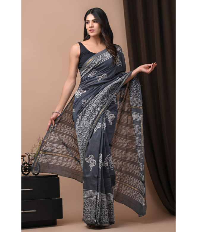 Hand block printed cotton sari