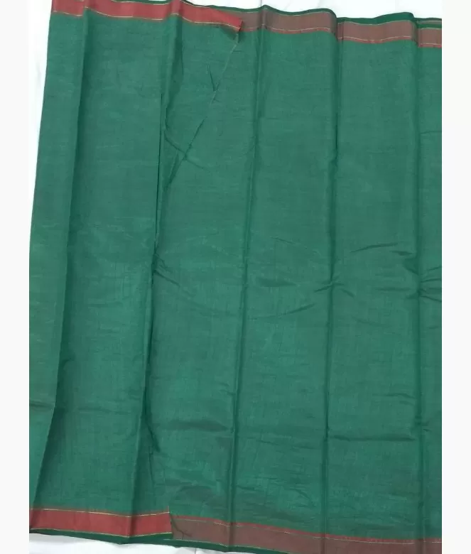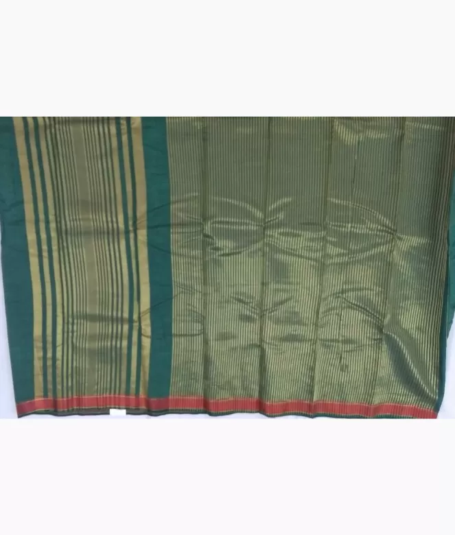 Border is of red colour thread weaving patti with small zari line with fine quality of work. Matching same border of saree is on blouse patti for back and sleeves.