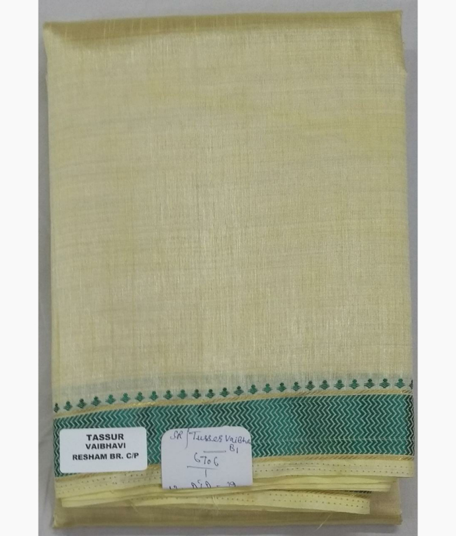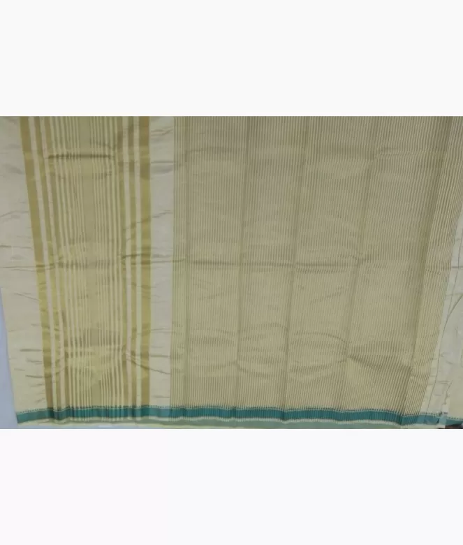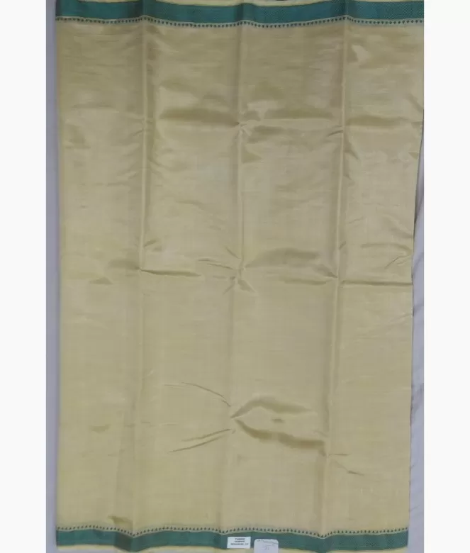 Border is of green colour thread weaving patti with small zari line with fine quality of work. Matching same border of saree is on blouse patti for back and sleeves.